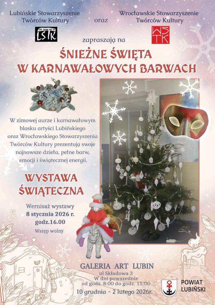 Już od 10 grudnia 2025 r. spotkamy się ponownie w świecie sztuki i emocji! Lubińskie Stowarzyszenie Twórców Kultury wspólnie z Wrocławskim Stowarzyszeniem Twórców Kultury zapraszają sympatyków malarstwa, fotografii, poezji i rękodzieła do Galerii Art Lubin przy ul. Składowej 3. Prezentowana jest tam wystawa, która jest owocem ...